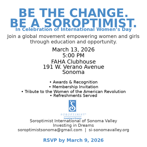 | JANUARY 2026 | FEBRUARY 2026 Board Meeting Maida's Southern Boil Feb 7 Business meeting Feb 13 Farm house 12PM | MARCH 2026 8th Int. Woman’s Day Celebration for our Membership, Award Winners, Sonoma Woman's Club Business meeting March 13, Farm House 12PM Egg Stuffing Party TBD | APRIL 2026 Easter Egg Hunt April 4 |